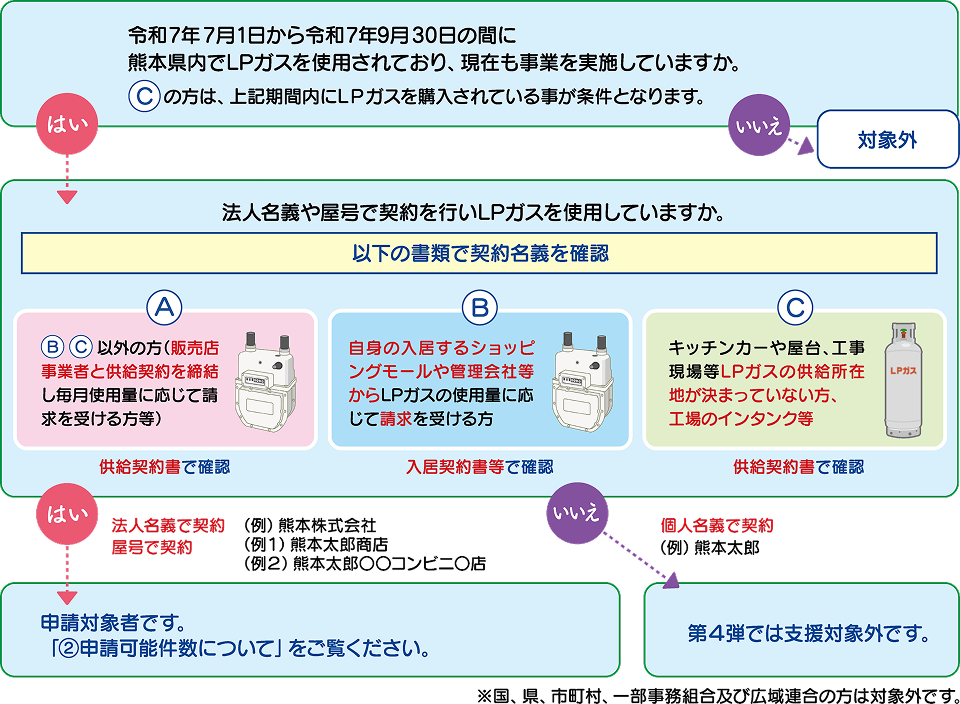 ②支援対象者Bに該当する方は請求書記載の事業者名をLPガス供給契約者名の代わりとします。
