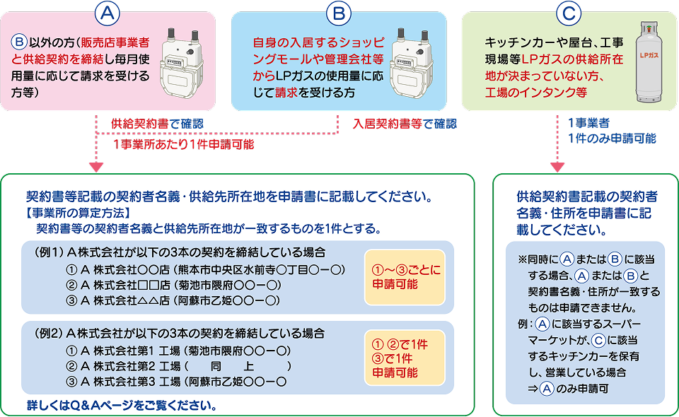 注2)申請者とLPガス供給契約者および実績が分かる資料に記載されている契約者名、口座名義人は、原則として同一のものとします。